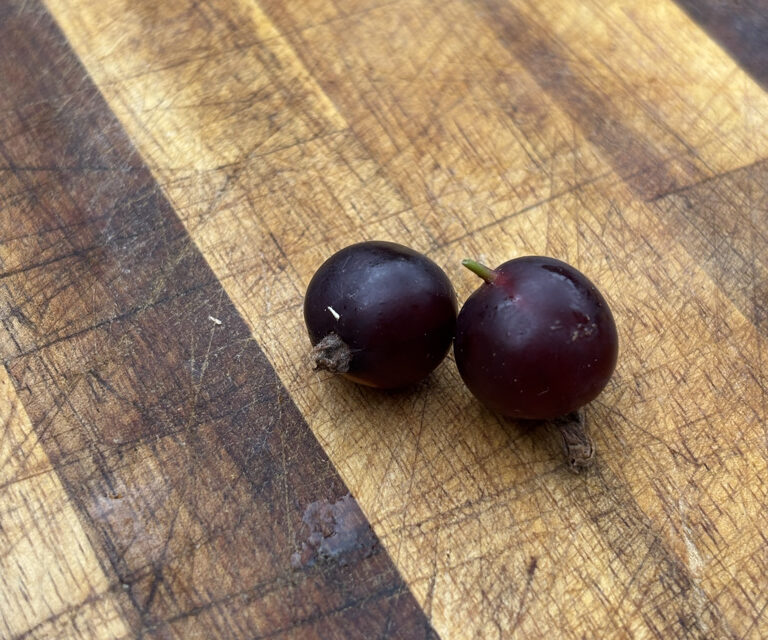 La caseille est un arbuste fruitier issu d’une hybridation entre le cassis et la groseille divarcatum (qui elle aime ressemble à la groseille à maquereau !). Elle produit des grosses baies ressemblant à des cassis à maturité, mais avec un texture semblable à la groseille à maquereau. Son goût est plus léger que celui du cassis, plutôt acidulé.